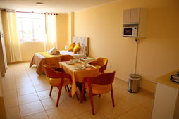 Cocina Equipada: Libertad total para tus comidas con frigobar, cocina, microondas, hervidor y vajilla completa.